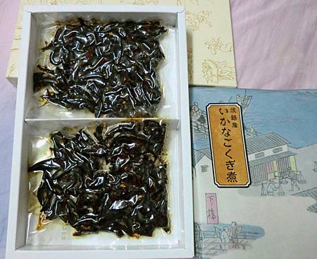 會買這盒,是因為在天神橋筋有買一盒類似的小魚,必須現吃的,吃完覺得還不錯,所以才會在機場看到有真空包裝,忍不住就買了一盒回家配飯吃~