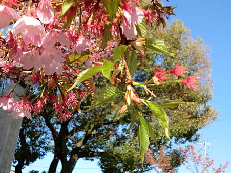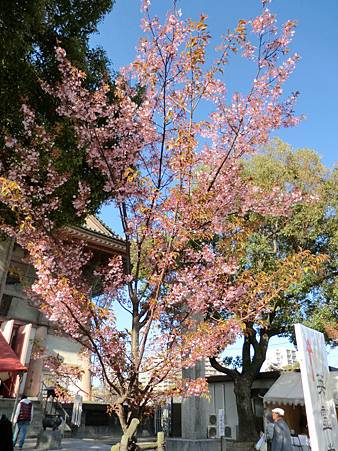 不過,我在這兒,在日本看到第一棵有盛開的櫻花!(應該不是梅花吧...本人櫻花梅花傻傻分不清楚,只要有花就好!)