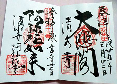 走出清水舞台,就可以看到納經所,很多人排隊在寫朱印~而且台前就直接貼上朱印的範例,因此一目了然,可以知道現在是寫哪個朱印~
