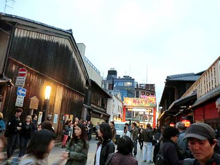 擠滿著人的花見小路!一堆講英文的觀光客站在一間店門口排排站...我們猜測,是在堵準備上班的藝妓吧.........真可怕= =
