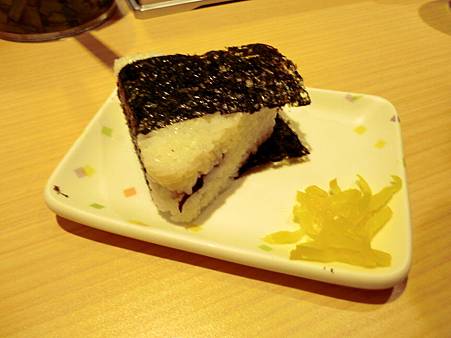沒料的飯糰,搭配右下吃起來酸酸的小菜,還不錯,個人覺得在日本吃到的米都還滿好吃的!
