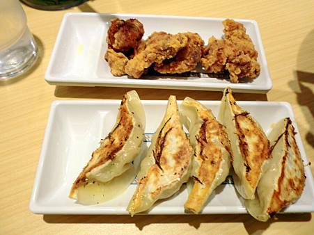 兩位男士點的分別是飯糰+唐揚+麵、飯糰+煎餃+麵。