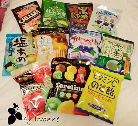 上圖:應該是在黑門市場買的糖果,剛好看到一間專賣糖果、餅乾的店家,糖果分區,一包單價110~180日圓不等,我都挑便宜的,因為幫朋友買的~~