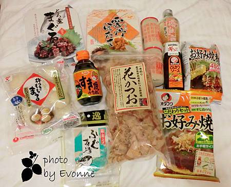 上圖:好像家庭主婦會採買的內容物喔...|||,本人超後悔沒有買日式美奶滋回來,想說回來台灣的漢神買就好,結果單價(NTD169)讓我退避三舍...沒關係,沒有美奶滋有大阪燒醬,大阪燒一樣是大阪燒!