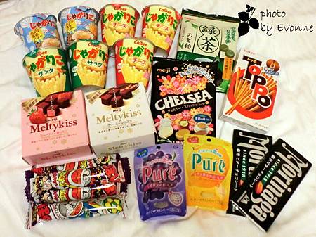 北海道戀人,7-11常見~很喜歡草莓口味,純粹喜歡就買了,左下的玉米棒是我家流氓的最愛,Pure軟糖上回買檸檬很喜歡,因此買了其他口味來吃~