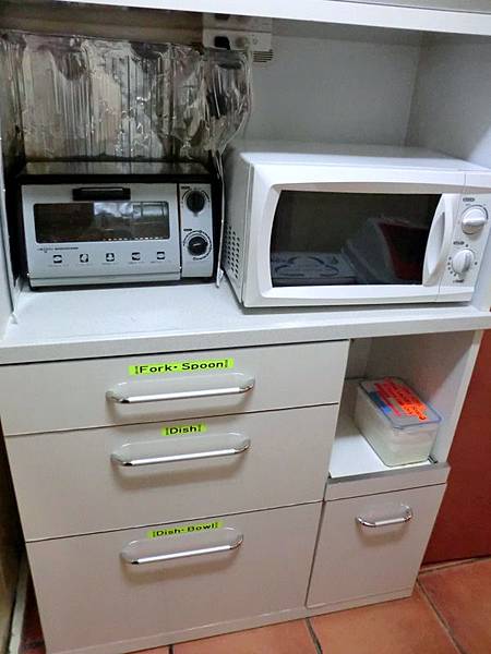 廚房的設備也算齊全,有小烤箱、微波爐、電磁爐,調味道也都可以自取使用。