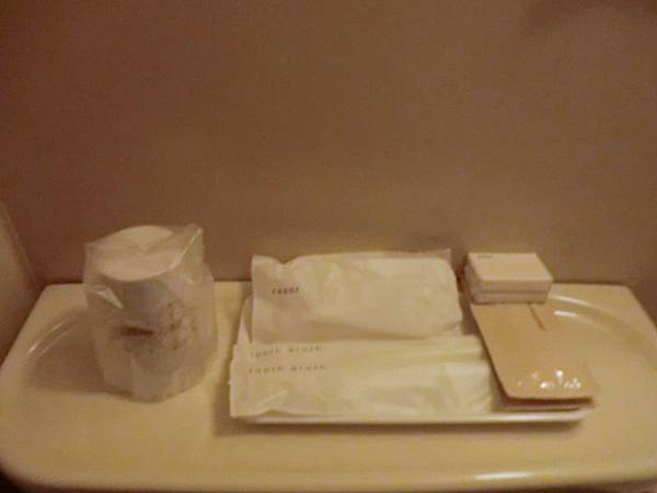 小小的浴室,簡單的備品。牙刷我們後來去藥妝管買新的來用,第一次用日本牙刷,沒想到意外的好刷耶^^"
