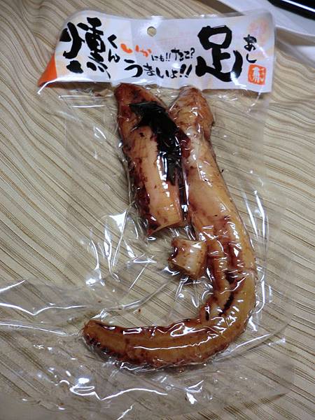 章魚腳,品名:燻足,這是在淺草那邊的北海道物產館購入,一進門就看著這個寫著「帶我回家」,醬油滷過的,有點硬硬的,但還不錯,適合下酒