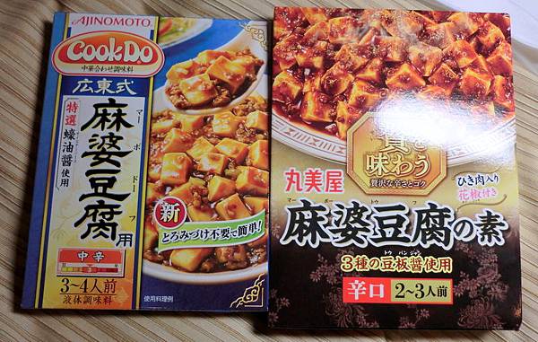 上圖右:丸美屋麻婆豆腐,看它寫個素,不知道素食可不可食用,這個還有豆瓣醬的顆粒,加豆腐真的很下飯,只有稍微有點辣,好吃!