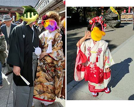 小女孩給我拍照時,可能被大家拍太多了,顯得有些不耐煩,她媽媽還一直跟我說不好意思。穿著七五三衣服的小女孩真是超可愛的啦!不過那一身行頭也價值不婓!